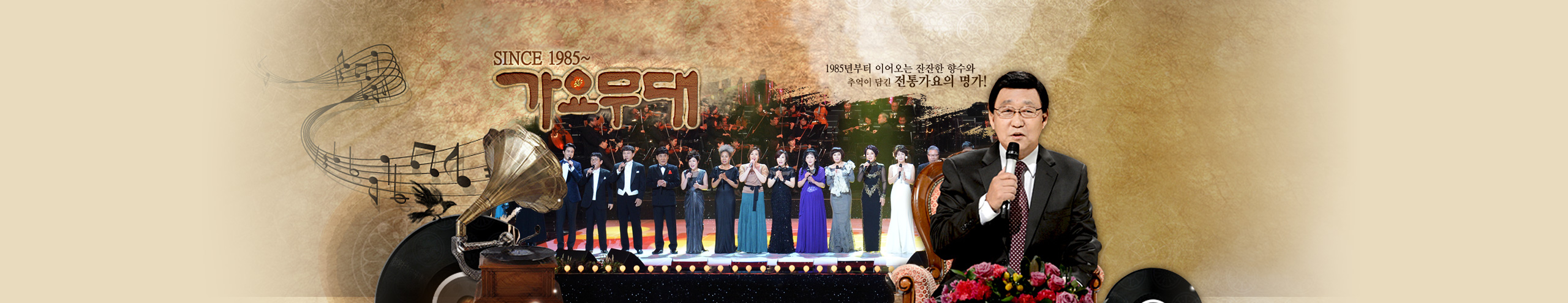 1985년부터 이어오는 전통가요의 명가! 흘러간 노래와 트로트를 부르며, 향수와 추억을 되새기는 중장년층 대상 음악 프로그램